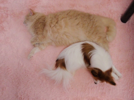 ネイチくんとデュウちゃんが寄り添って眠っていました