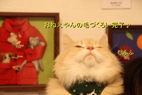 とうことで作品紹介も兼ね自分の猫毛フェルト作品と記念撮影するネイチくん。