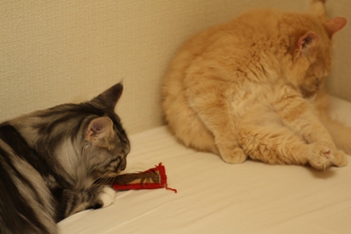 ねこおもちゃも、ネイチくんが 先に制したんですね^^