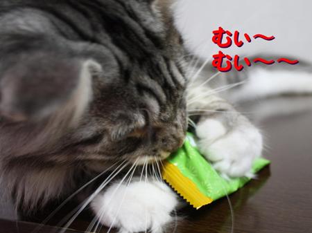 にくきゅうをつかって頑張ってパッケージをあけようとしてますね(^-^*