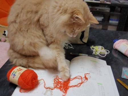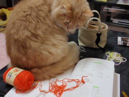キレイなオレンジ色の毛糸ですね~。何ができるかな??