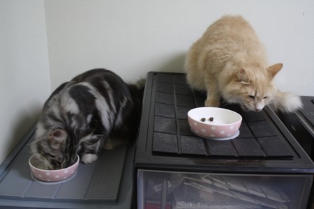 猫ちゃんによって食欲が違うので、食べる時も見張ってないと大変です。