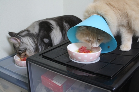 (ネイチくんのネッカーはストラバイトのこととは関係なく、頭にキズを作ってしまったので掻いて悪化させないようにネッカーをしています。)
