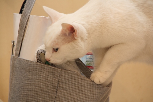 「たくさんの猫ちゃんと飼い主さんに喜んでいただきたいな。」そんな想いで紙袋はパンパンの状態。