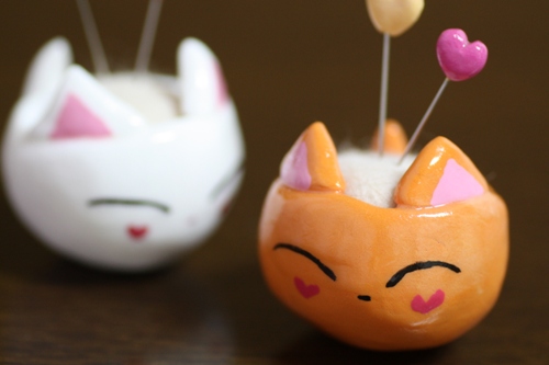 ピンクッションの中に入っているのがネイチくんの毛でネックレスのトップの猫顔玉がショーンのものです。