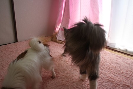 カーテンかぶったデュウちゃんに笑っちゃいました。