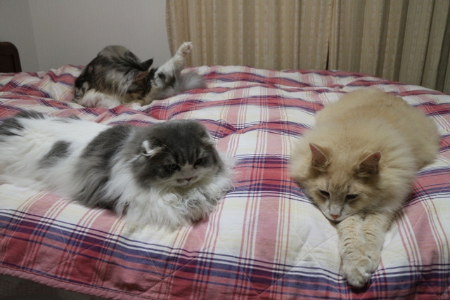 経験のある3匹は慣れているけれど