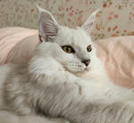 くっきりアイラインで可愛らしくもメインクーンらしいキリリとした顔立ち