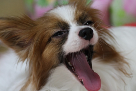顎が外れそうなほど大きなお口であくびしているデュウちゃんや