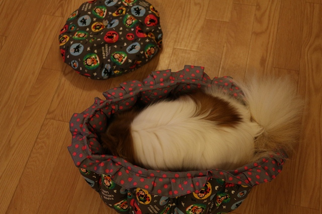 寝床を整える時に何故か中のクッションを飛ばしちゃうのですが![]()