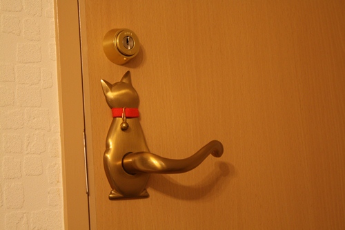 変なひとがカギをこじ開けて入ってこないか番犬ならぬ番猫しています。