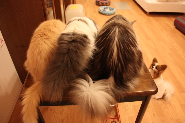 ノルウェージャンのネイチくん、パピヨンのデュウちゃん、メインクーンのショーンくん、そして新入りのスコティッシュフォールドロングのパイパー。長毛4匹のドタバタな毎日と成長の記録日記です。