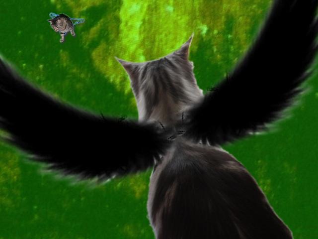 真っ黒な翼をバサバサといわせて飛んでいると・・・