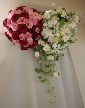 これは日曜日のウエディングで使用した白ブーケと色ブーケ