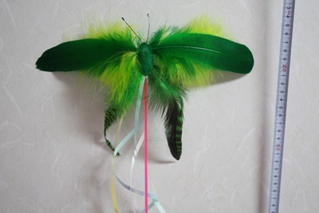 ネイチくんがいじっているじゃらしは羽根でできた大きな蝶々さん