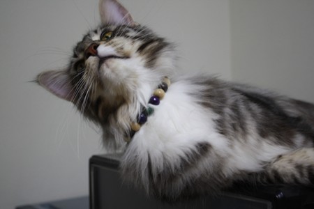 くっきりアイラインで可愛らしくもメインクーンらしいキリリとした顔立ち