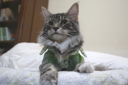 ショーンの生地は爽やかなグリーン系にしてみました。