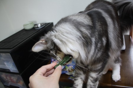 初めてのグリニーズも何の躊躇もなくガジガジ