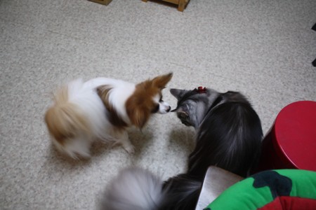まずは袋から出す前から匂いを嗅ぎに来ていたショーンから