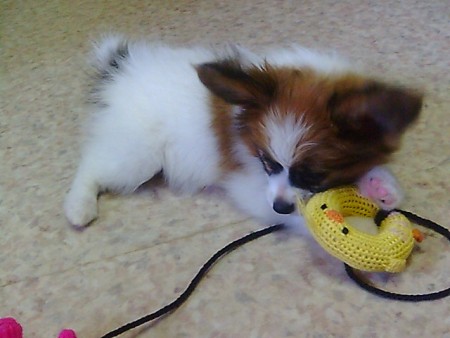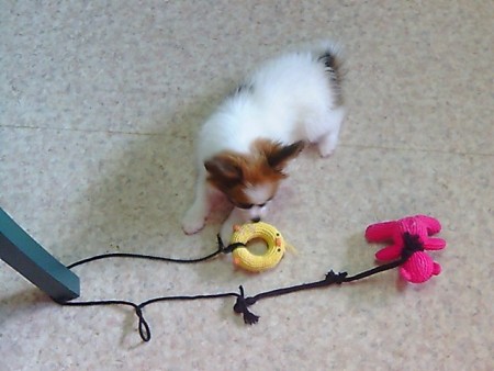 おもちゃで遊ぶちびっこデュウちゃんです。