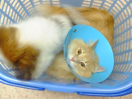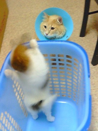 洗濯かごでのんびりお昼寝をしていたネイチくんのところに