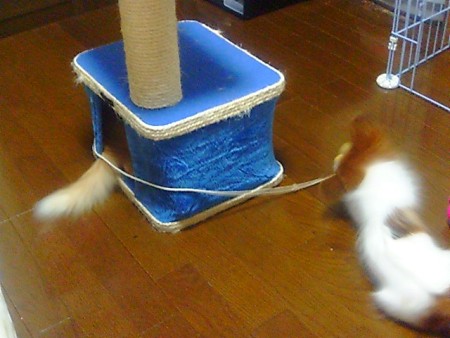 紐付きおもちゃでぐるぐる巻きにされつつあるネイチくんなのです~