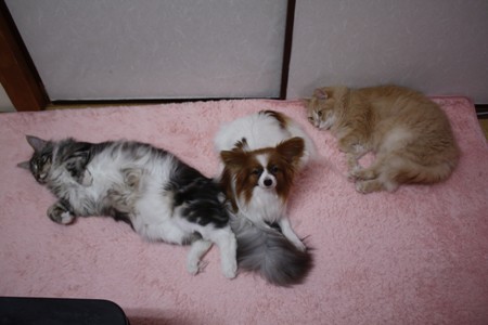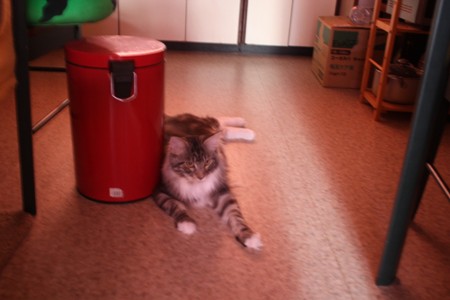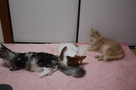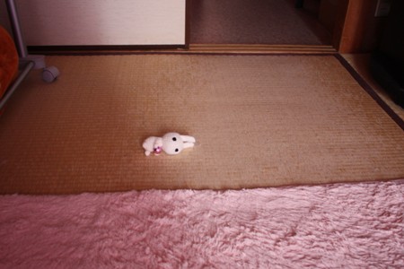 夜中の猫たちの暇つぶしの為に出しておいたうさぽんが気になったのか