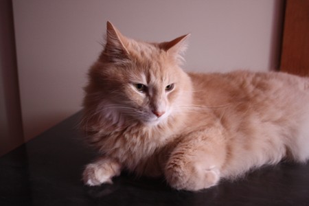 くっきりアイラインで可愛らしくもメインクーンらしいキリリとした顔立ち