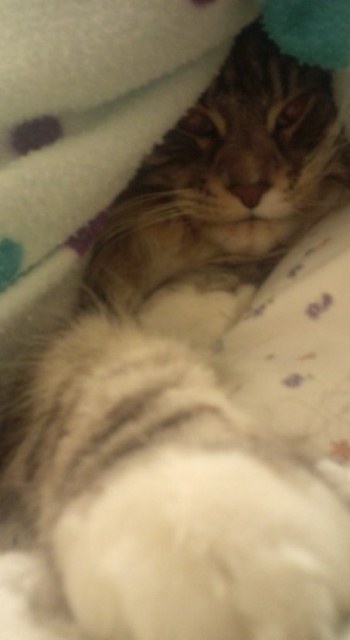 emojiお布団に潜り、おねえやんの腕枕を独り占めでご満悦のショーンくんでありますっemoji