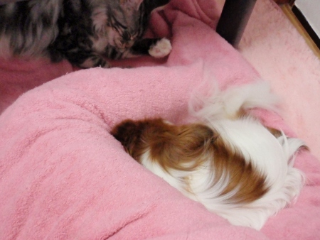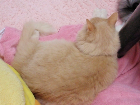 この時は足の太ももとももの間に収まって寝ています。