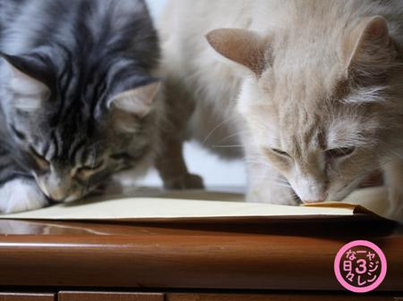 何故かすごい勢いで封筒の匂いを嗅ぎまくるふたり