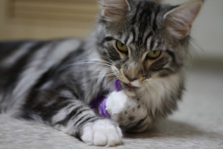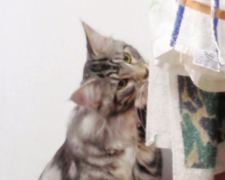 くっきりアイラインで可愛らしくもメインクーンらしいキリリとした顔立ち