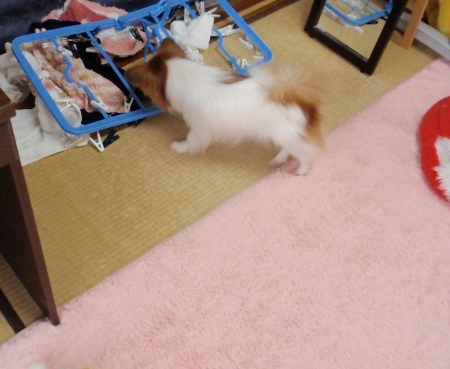 雨の日が続いて仕方なくお部屋に洗濯物を干すと