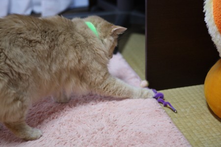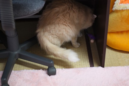 ネイチくんは気に入った紫の方を持って机の陰へ