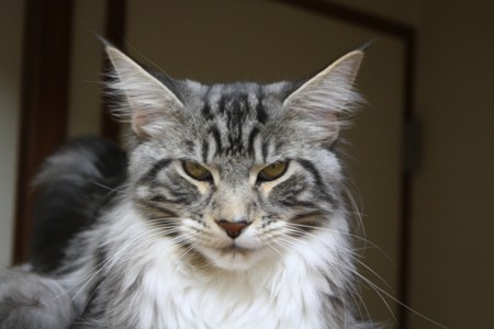 くっきりアイラインで可愛らしくもメインクーンらしいキリリとした顔立ち