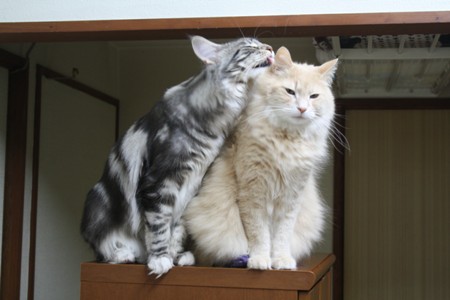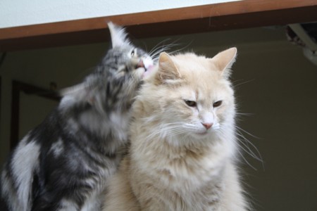 ショーンがネイチくんをグルーミングしています。