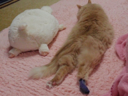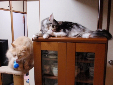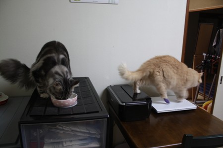 開封する前にメインクーン同士で記念撮影しようと思ったのに