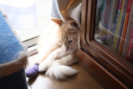 今度は靴下よりもきっちり止まる包帯を巻かれてしまった・・・。