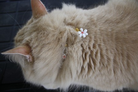 あっち向いてくれたりすると首周りのお花柄も見えます