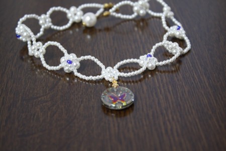 材料はお花の部分はパールでその他はいちごも含め、ビーズでできています。