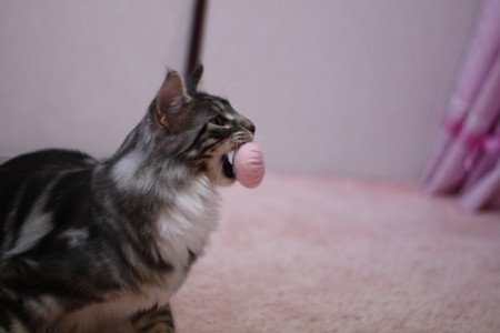 くっきりアイラインで可愛らしくもメインクーンらしいキリリとした顔立ち