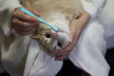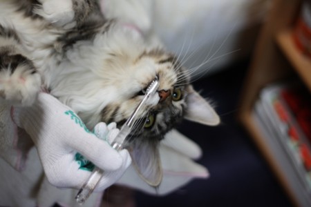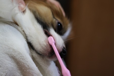 (ウチではみんな人間の幼児用歯ブラシで歯を磨いています。)