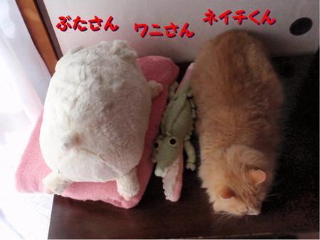 ワニさん:おねえやんお手製ワニのあみぐるみ、猫達のあご乗せ枕