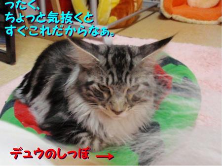 デュウちゃんを睨みつけつつ