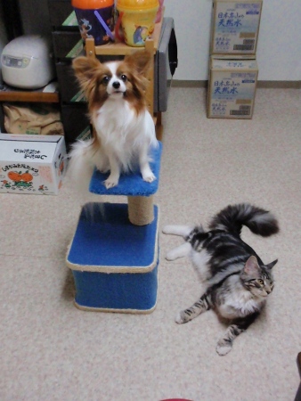 (デュウちゃんはブラッシング直後なのでミニタワーに乗っています。)