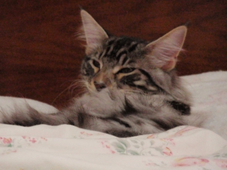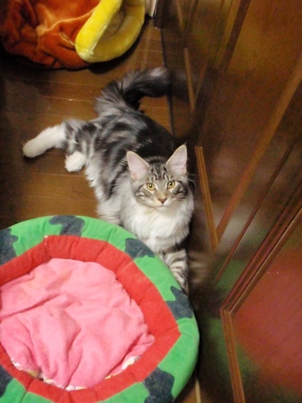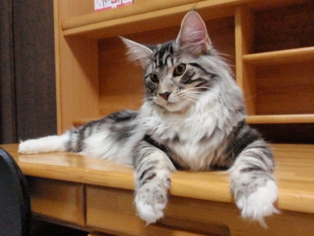 くっきりアイラインで可愛らしくもメインクーンらしいキリリとした顔立ち