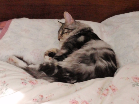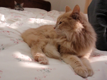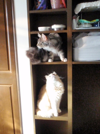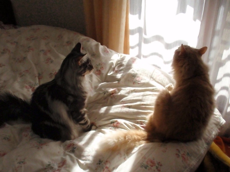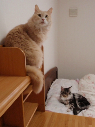 猫たちがベッドの上にばかりいて遊んでくれないから、