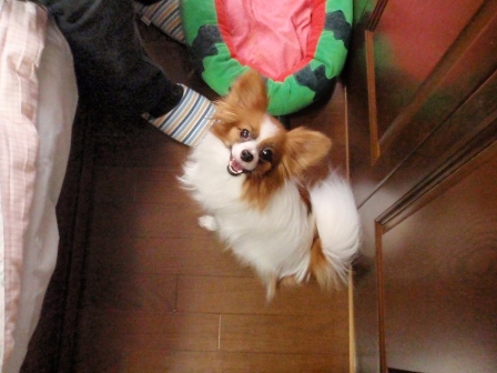 デュウちゃんはベッドの上は禁止だからなぁ。