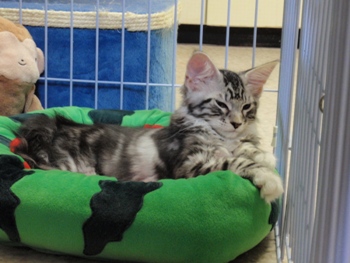 くっきりアイラインで可愛らしくもメインクーンらしいキリリとした顔立ち
