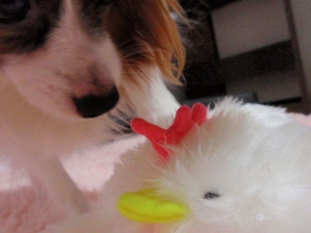 。いつも通り、かぶりつきですな。お得意の一点集中攻撃ですでにトサカがヤバイことになってるけど・・・